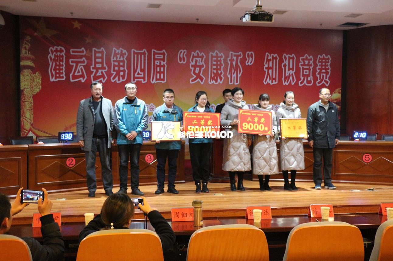 為弘揚(yáng)安全文化,普及安全知識(shí),不斷提高全社會(huì)對(duì)安全工作重要性的認(rèn)識(shí),灌云縣安監(jiān)局于2018年12月19日下午,在灌云縣規(guī)劃館三樓,隆重舉行灌云縣第四屆“安康杯”知識(shí)競(jìng)賽。公司安環(huán)部的徐霞明、徐鴻茹和趙云林代表科倫多參加了競(jìng)賽。競(jìng)賽現(xiàn)場(chǎng)氣氛熱烈,經(jīng)過(guò)幾輪緊張的必答和搶答,最終科倫多代表隊(duì)獲得團(tuán)體第二名。圖為競(jìng)賽結(jié)束以后頒獎(jiǎng)時(shí)的場(chǎng)景圖片。