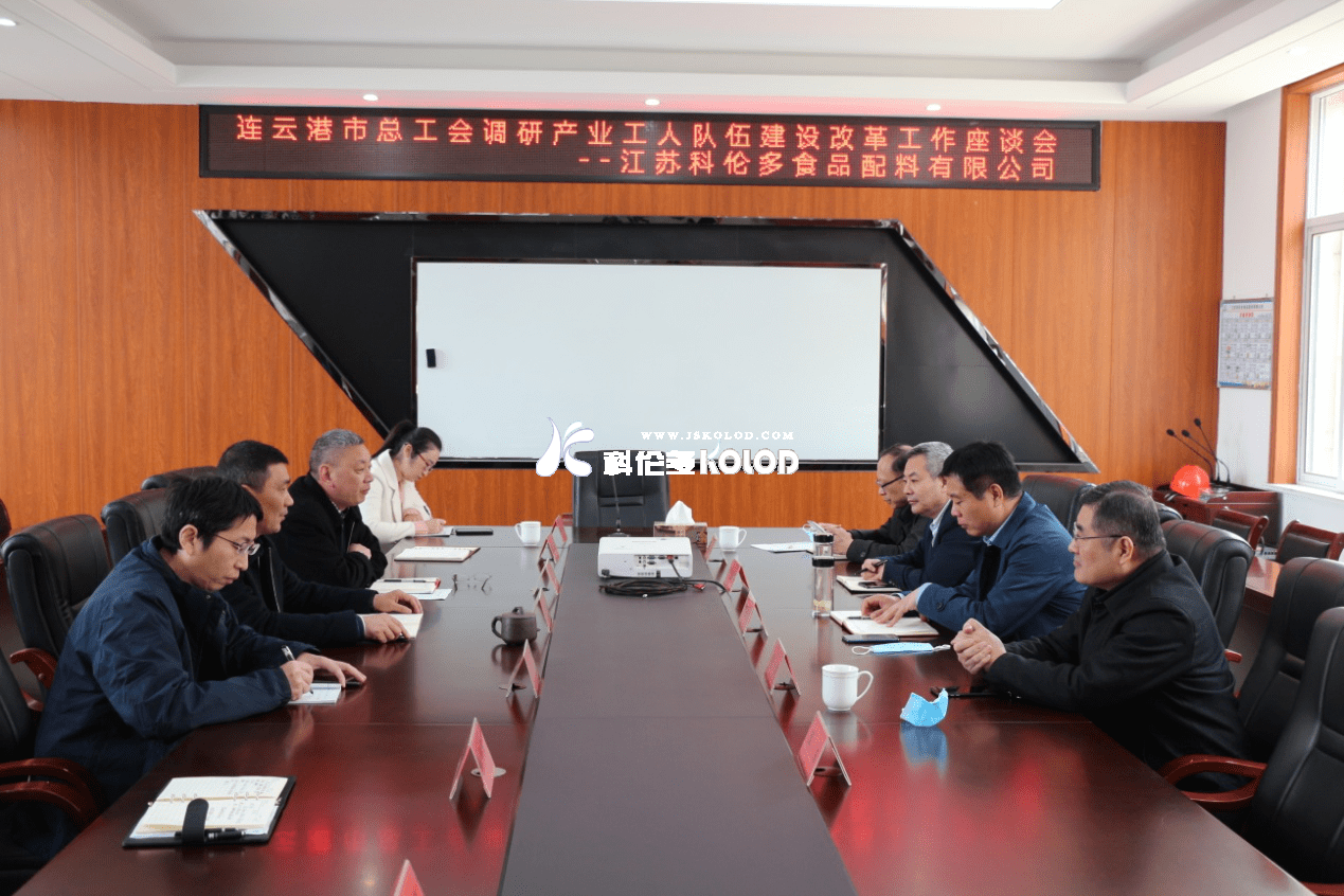 2020年4月14日,連云港市總工會(huì)黨組書(shū)記、副主席丁維杰帶領(lǐng)市總工會(huì)相關(guān)領(lǐng)導(dǎo)一行8人,蒞臨江蘇科倫多食品配料有限公司,調(diào)研產(chǎn)業(yè)工人隊(duì)伍建設(shè)改革工作座談會(huì),灌云縣總工會(huì)主席徐順達(dá)陪同調(diào)研。首先由科倫多董事長(zhǎng)封寬裕進(jìn)行匯報(bào),通過(guò)公司人才隊(duì)伍建設(shè)、人員福利待遇、員工保障、公司長(zhǎng)期規(guī)范建設(shè)等多個(gè)方面進(jìn)行了匯報(bào),隨后丁書(shū)記表示,科倫多公司在工人隊(duì)伍建設(shè)這塊是走在全市民營(yíng)企業(yè)前列的,保障了員工利益,同時(shí)也貢獻(xiàn)了社會(huì),公司制度完善,政治站位極高,希望公司有序推進(jìn),取得更高的進(jìn)展。